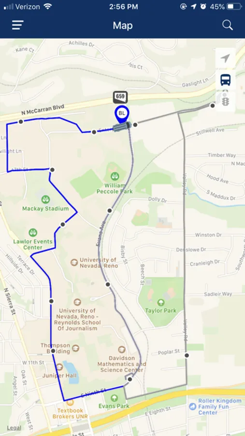 The PackTransit App provides University of Nevada, Reno passengers with real-time information about their shuttle's location, routes and more.
