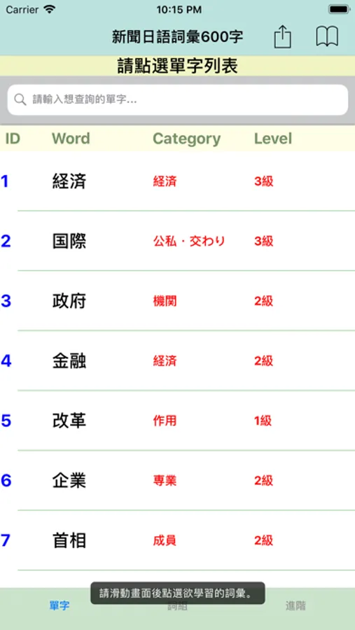 4.獨家提供日文新聞詞彙600字,搭配深度學習功能,讓您詞彙使用自如。