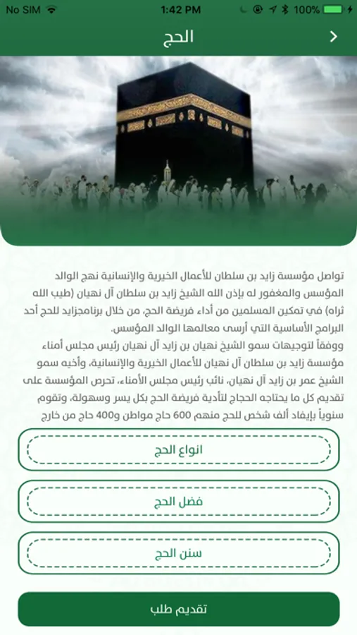 This application is provided by Zayed Charity and Humanitarian Foundation which is a governmental non-profit charitable organization that works to provide donation to needy people inside and outside the country in various humanitarian fields such as Hajj, health and education through the submission of applications through which to complete some data necessary to identify the most needy and deserving of these services.