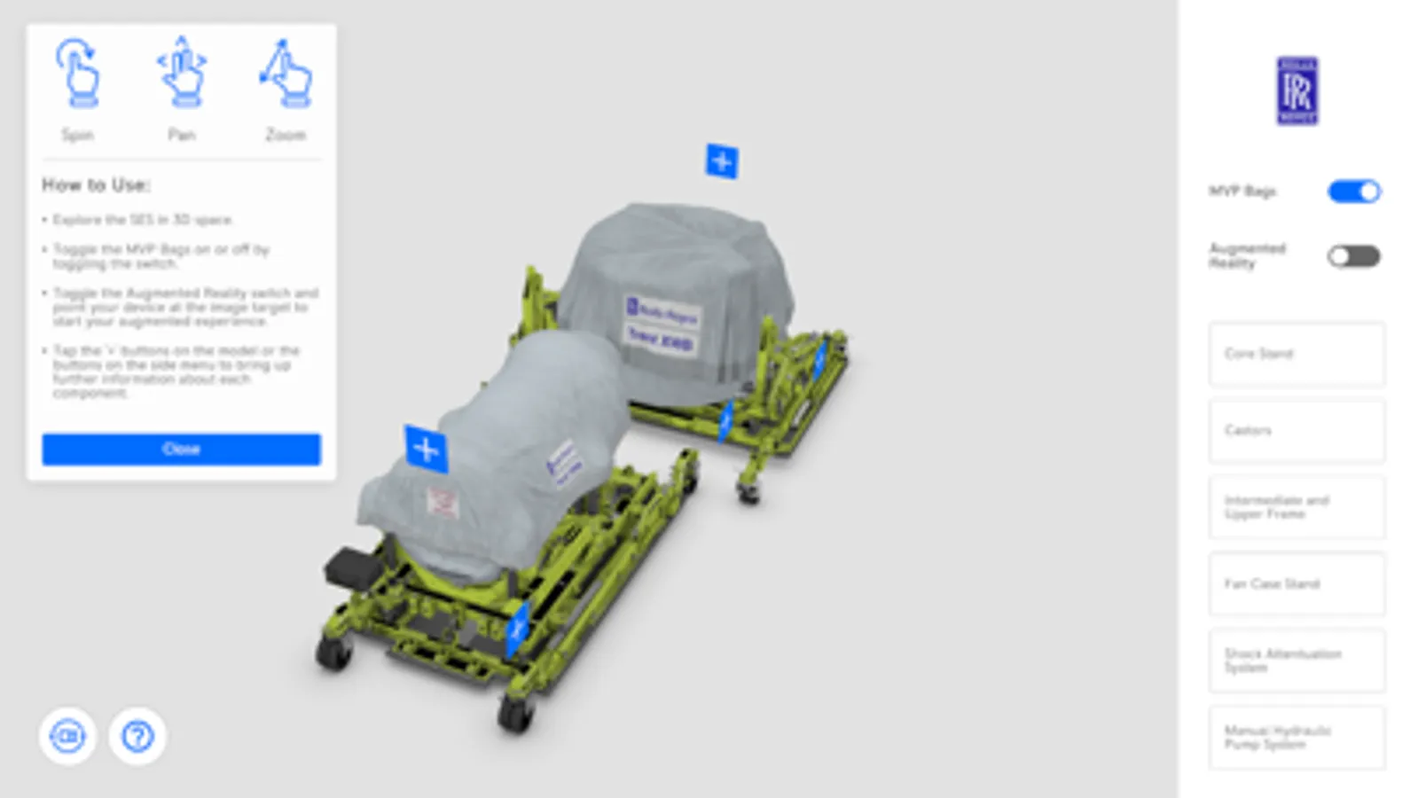 SES AR is an app designed to inspire and educate schoolchildren about the exciting possibilities of a career in Science, Technology, Engineering and Mathematics (STEM) and in teaching them about the practical uses of virtual and augmented reality in the world of work. In addition, for engineers, the app provides a clear example of how augmented reality can be used to bring complex concepts to life. It demonstrates an engineering procedure Rolls-Royce has developed to transport the Trent XWB by air freight when no other transportation options are viable. The procedure involves the separation of the core engine from the LP compressor fancase using dedicated engine separation and transportation stands. Learn more about the procedure by interacting with a 3D model in both simulated and augmented reality!