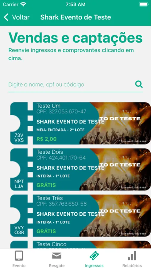Com o App iPass Comissário você consegue vender ingressos por cartão ou dinheiro, e consegue acompanhar suas vendas através de relatório. Envie os ingressos por WhatsApp. Simples, fácil e rápido.