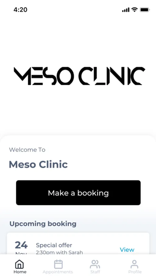 The Meso Clinic app makes booking your appointments and managing your loyalty points even easier. You're just a few taps away from feeling good and looking great!