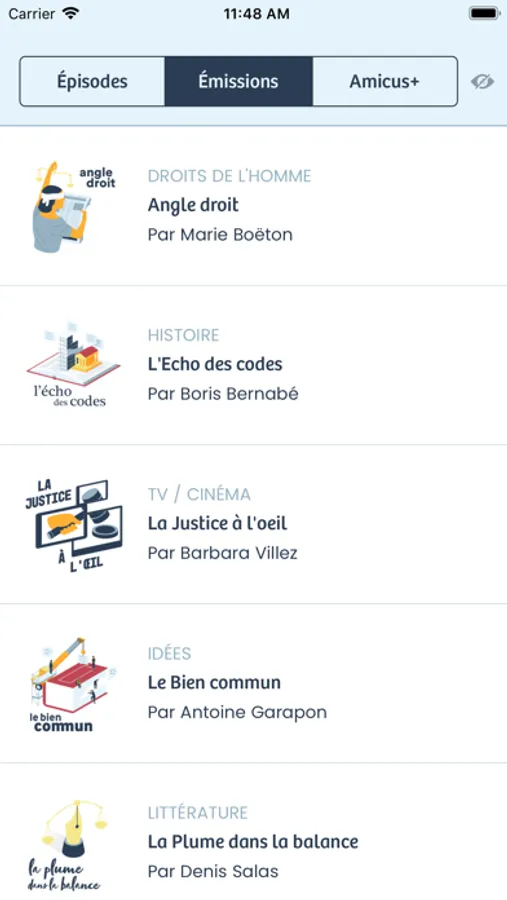 Amicus Radio est un catalogue de podcasts original (chroniques, magazines, reportages, entretiens et documentaires). Porté par le talent et la curiosité d’une équipe d’animateurs d’horizons divers – magistrats, professeurs, journalistes, avocats – nos productions s’appliquent à rendre le droit audible et accessible, par-delà ses frontières disciplinaires, culturelles ou géographiques. Histoire, actualité, littérature, cours du soir, reportages, documentaires, sont autant de sujets et de formats que nous parcourons au fil des podcasts, à travers le prisme du droit et de la justice.