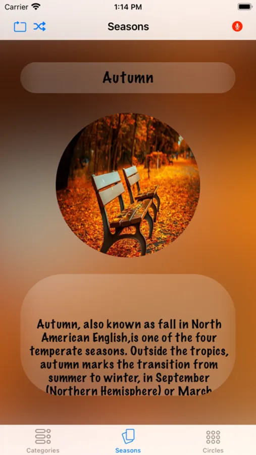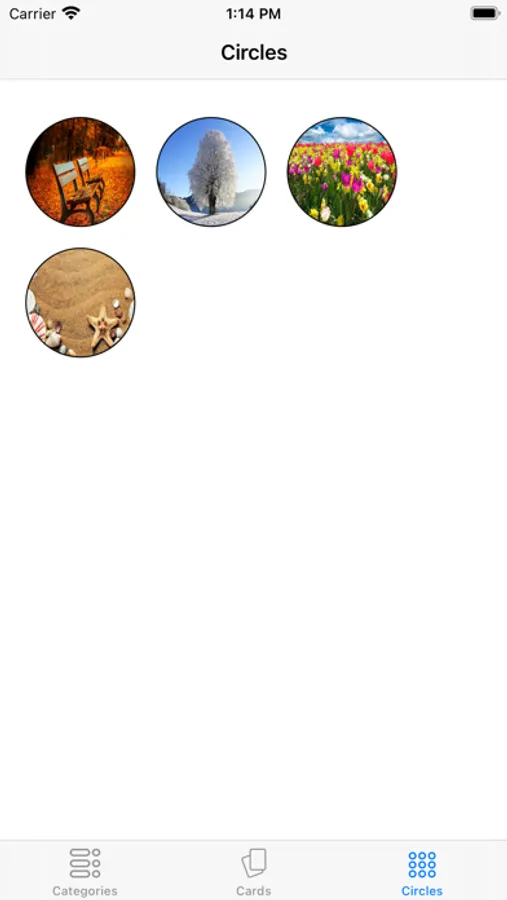 Circles will appear with the articles by category, where they can be manipulated, moving them and if you have a voice note, pressing the circle will be heard.