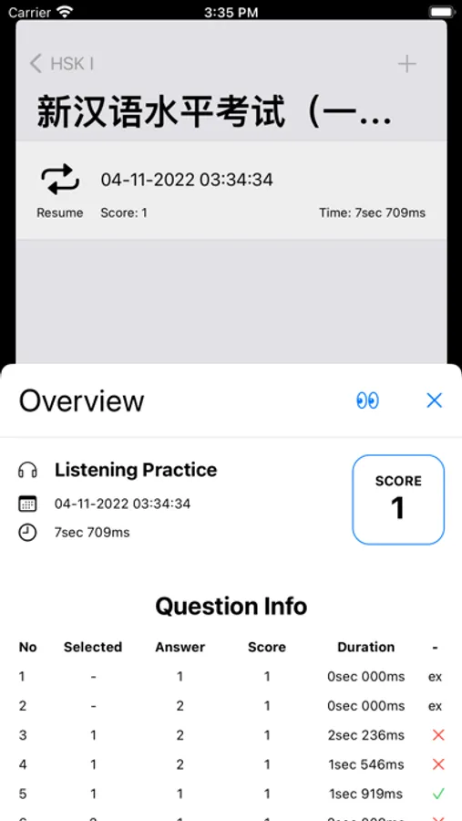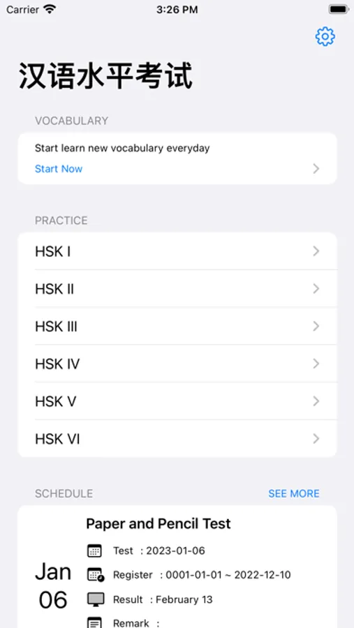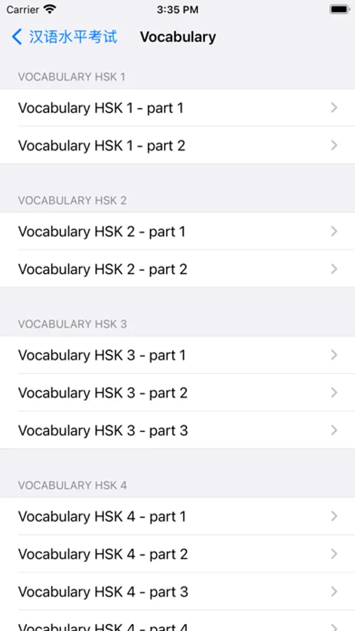 This app is free to use HSK test with real exam paper include all level from 1 to 6. It is also provide new words for self learn with quiz.