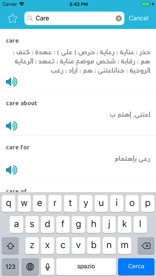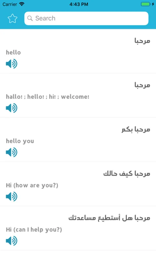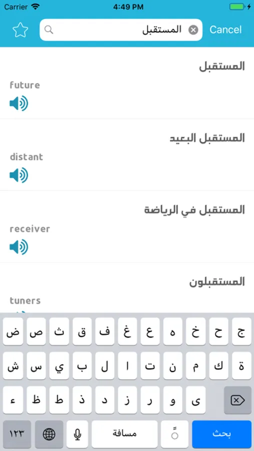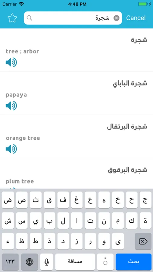 Audio pronunciation to find out how to pronounce the words in both English and Arabic.