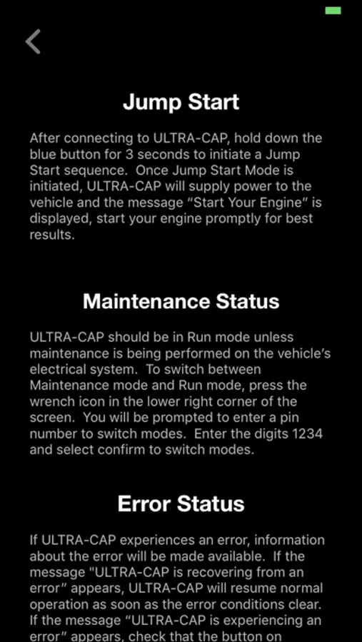 ULTRA-CAP® bluetooth remote control Application. Allows users to connect to ULTRA-CAP® units through bluetooth. Application shows important information such as voltage, current mode, and battery charge. This application will also allow the user to start a jump start with the ULTRA-CAP®