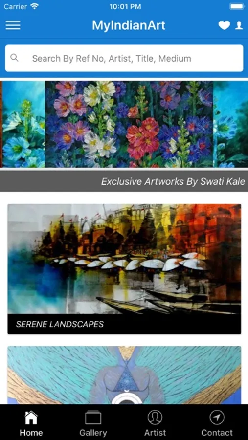 MyIndianArt.com - the official site owned by Masters Collection Art Gallery - displays a wide range of Indian Contemporary & Modern Art & Indian Paintings Online. Each piece of Indian Painting on the site is an original indian art and is carefully reviewed and chosen by our team to be put on the site along with the artist's profile / resume. These exclusive pieces of artworks are sure to catch the eyes and appreciation of the discerning art collector or even a first time art buyer.