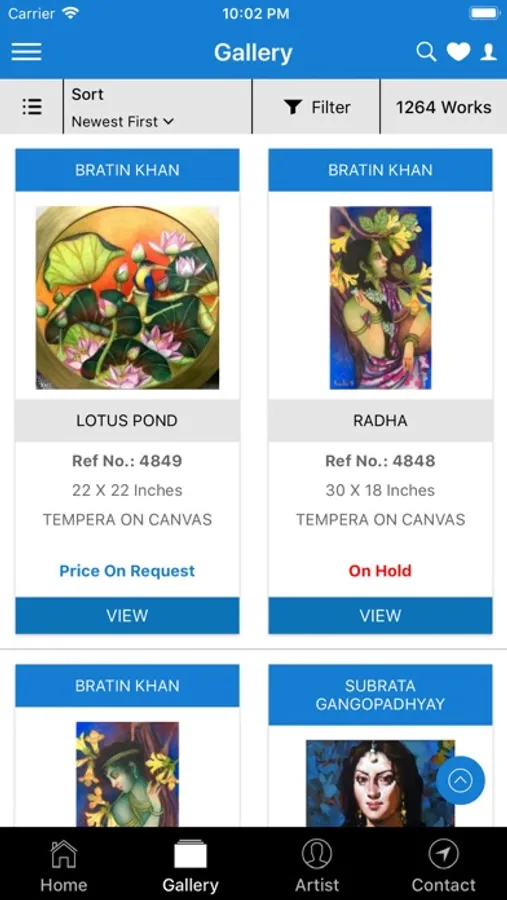 The site is updated on a regular basis by the gallery with information on new additions of Indian Art, Indian Paintings & Indian Artists being communicated to our esteemed art buyers & collectors on a periodic basis.