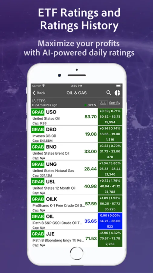 • Filter watchlists to see only ETFs with Grab or Buy ratings to save time and maximize your trading profits.