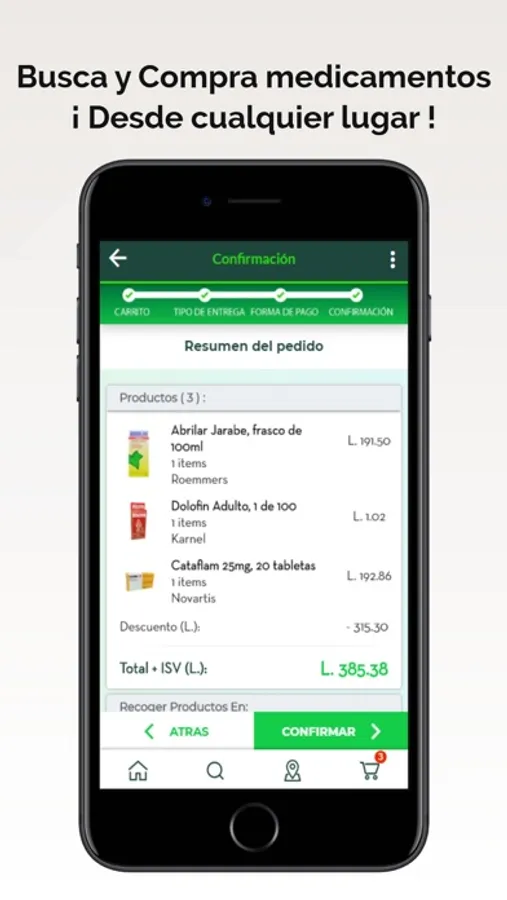 - Busca y compra tus medicamentos de forma fácil y sin complicaciones.