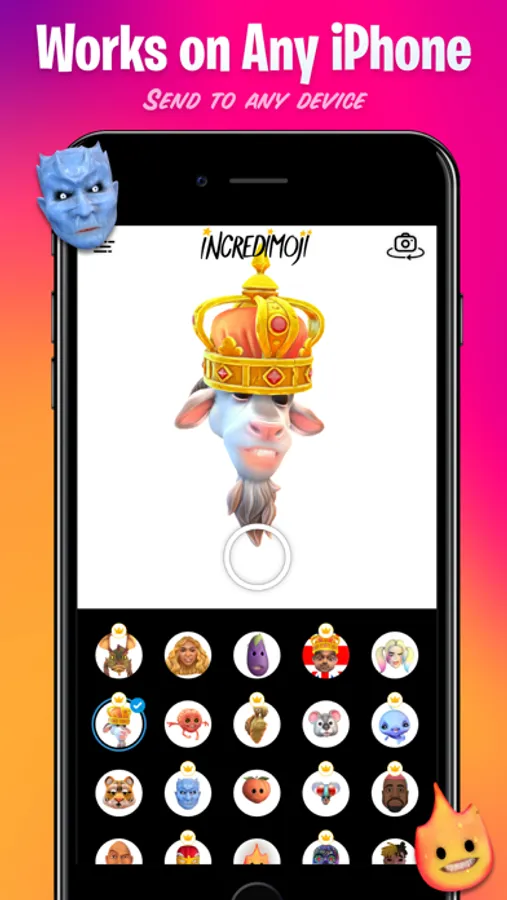 Incredimoji lets you seamlessly swap your face, in real-time, and replace it with an insane amount of choices - including celebrities, emojis, rappers, politicians, famous musicians, TV and movie stars, cartoons, animals and much more!