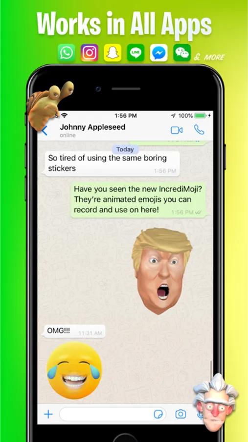 Incredimoji live face filters will move, contour, adjust, talk and mimic your facial movements - just like it was your own. Their face is now your face - so it’s perfect for Pranking!