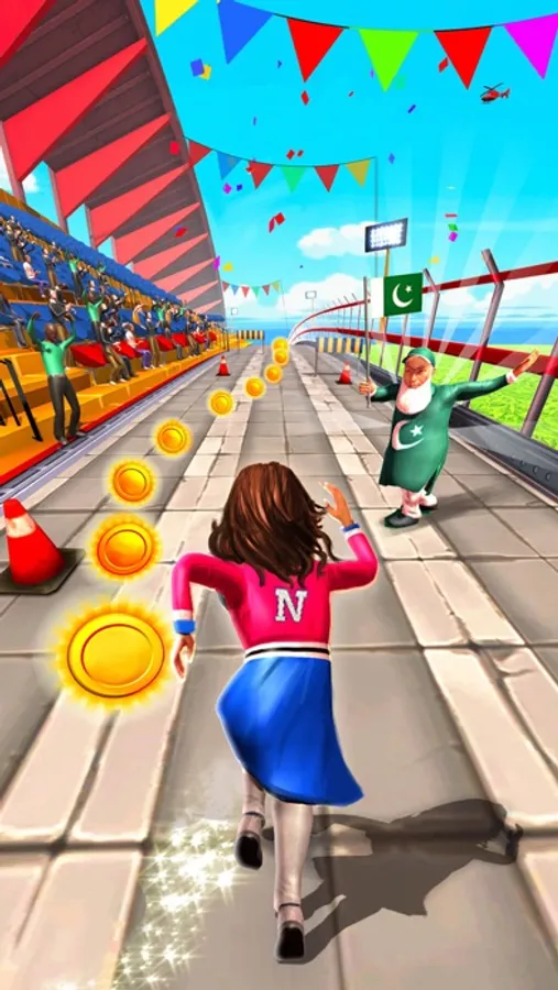 Nass Nasreen- Endless runner is filled with challenging path around cricket stadium. Run as fast as you can to escape from angry Rahim. People are watching epic running battle battle between Rahim & Nasreen in cricket stadium. This Cricket season has brought energy in Nasreen as she is running in full speed. Swipe to jump & slide and Tap to move right and left to avoid obstacles. Let’s see how far can Nasreen run!