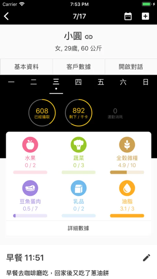 瀏覽客戶上傳的自主運動訓練內容、飲食內容,隨時掌握狀況