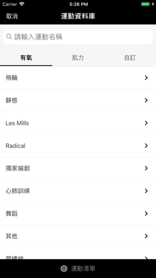 • 運動資料庫:完整的有氧課程以及肌力訓練清單,方便會員們記錄自己每次運動的時間、重量、組數,並清楚計算當次運動消耗的卡洛里