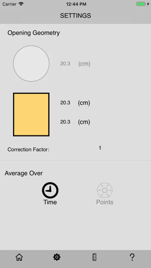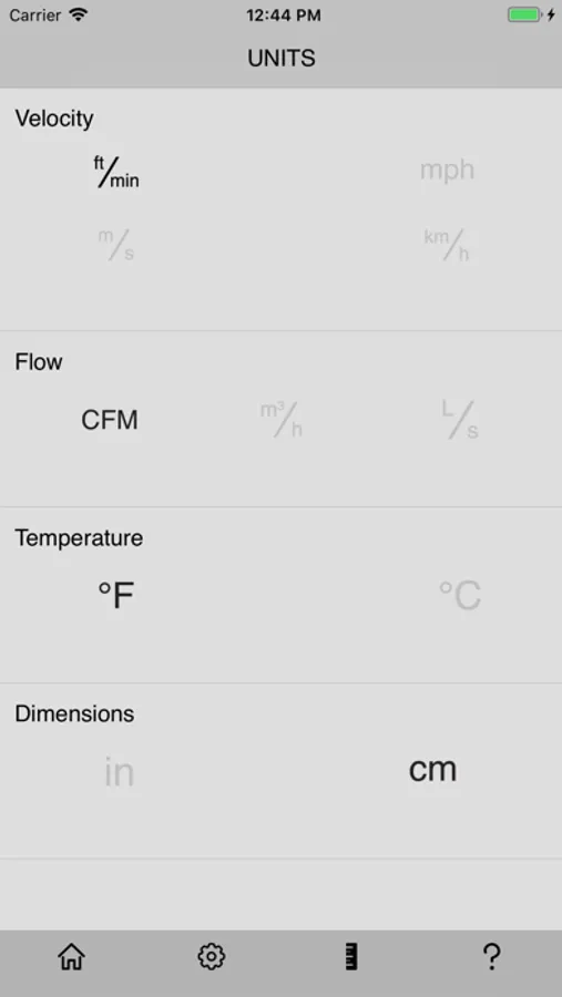 The app allows you to adjust for Round or Rectangular Ducting (in or cm) as well as take