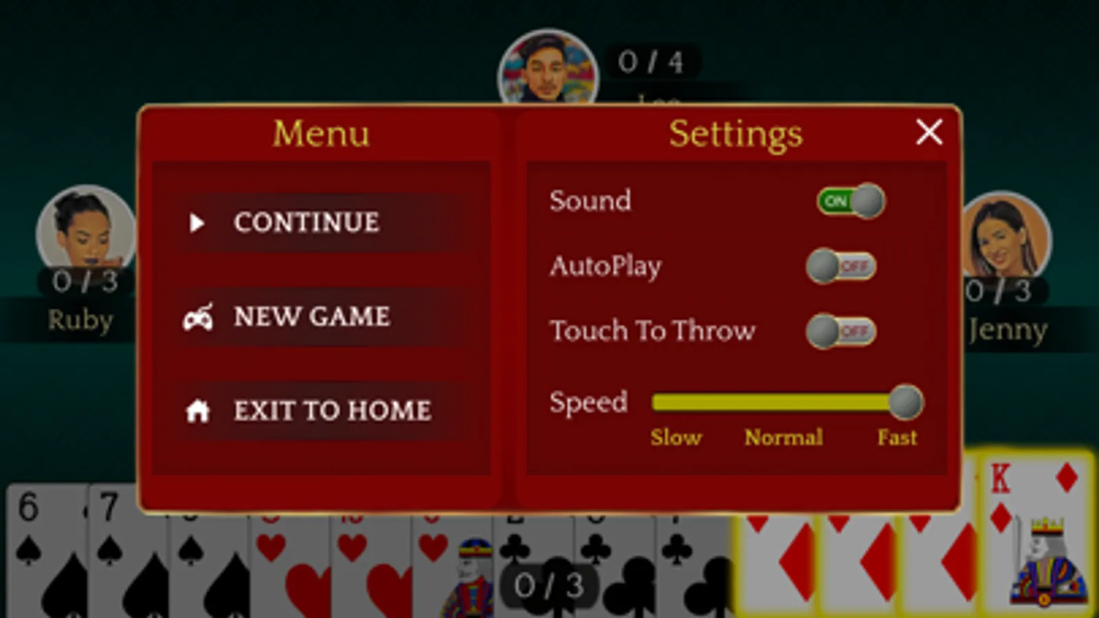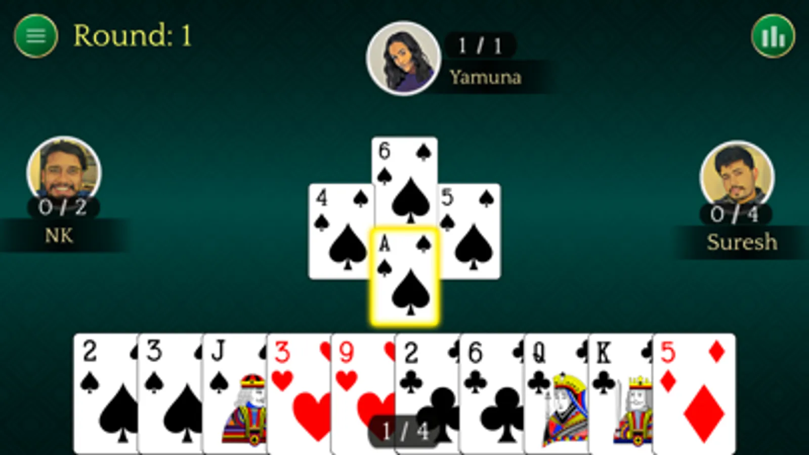 Callbreak is a variation of the spades card game, as played in South Asian countries like Nepal and India. Call Break is a relatively long-run game played with 52 cards deck between 4 players with 13 cards (thirteen patti) each. Its rules are pretty easy to learn. You can select different card themes and enjoy the game.