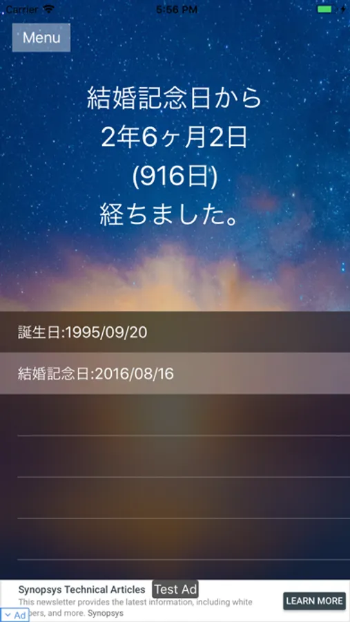 本アプリはあなたの大切な記念日を管理するアプリです。