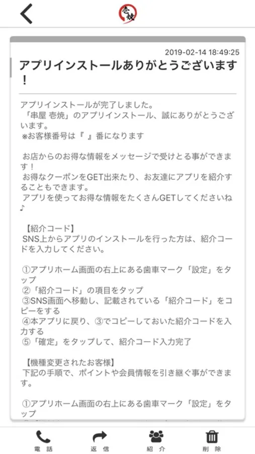 壱焼のアプリをSNSを通じてお友達に紹介する事ができます。