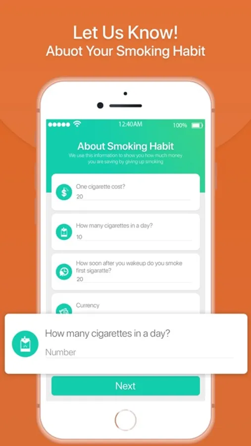 It shows various statistics and factual health-related information, based on your inputs, to keep you motivated on your task to stop smoking.