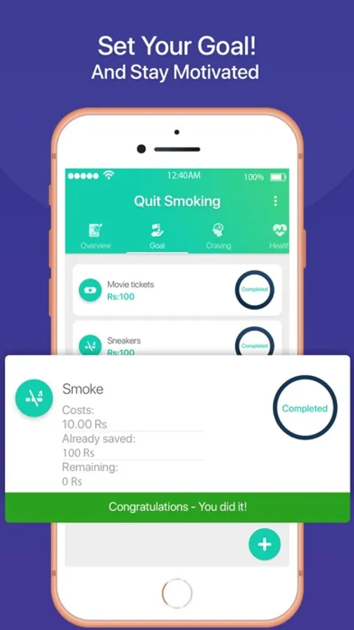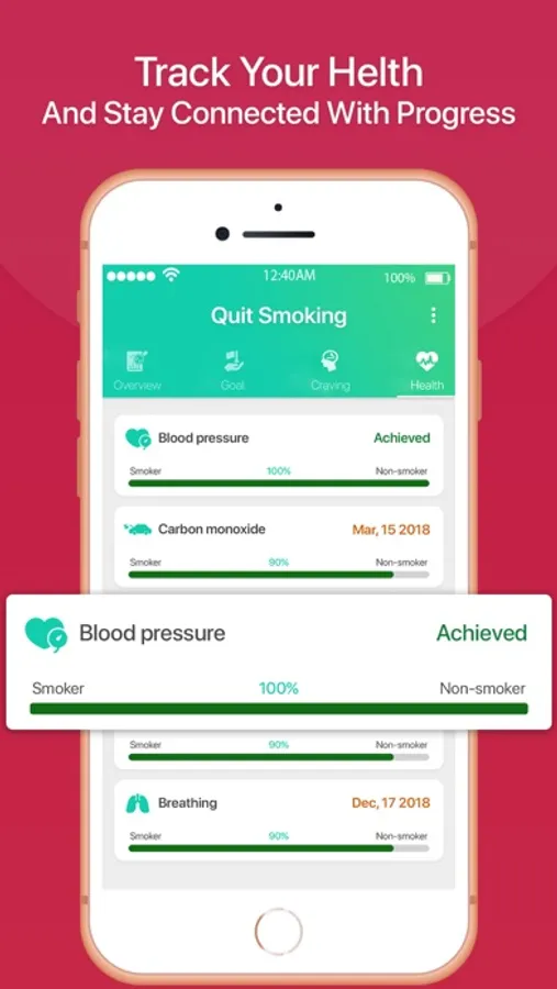 You can add goals and see the progress you've made in achieving that goal. You'll also receive achievement badges for hitting milestones like being smoke-free for a certain number of days.
