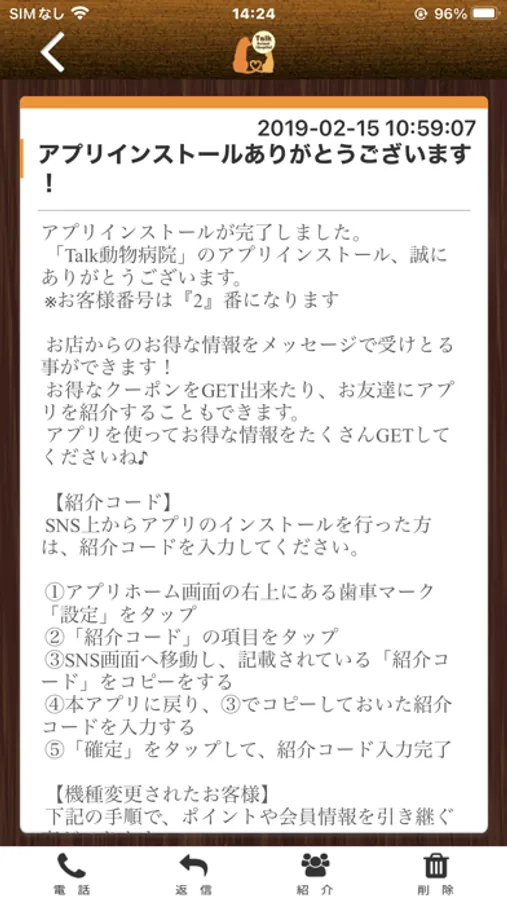 Talk動物病院のアプリをSNSを通じてお友達に紹介する事ができます。