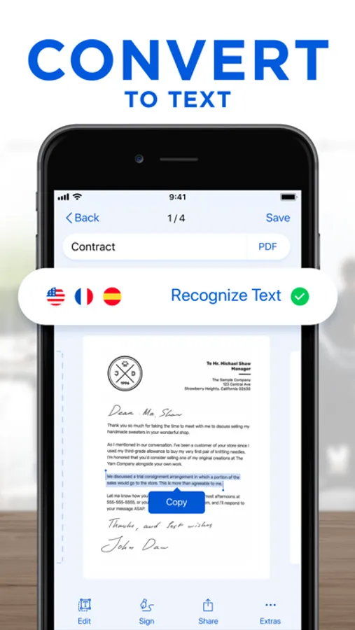 Lightning fast automatic edge detection and scanning. Use your iPhone/iPad with Word Scanner to scan paper documents, books, agreements, receipts, magazine, articles, notes, recipes, pictures, charts, tables slides, whiteboards and get perfect digital copies.