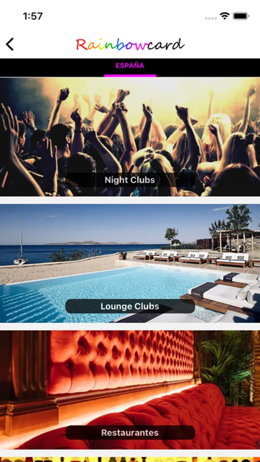 From now on your days will be easier and more enjoyable with your new Rainbowcard, it's the only App that you can have your VIP accesses to all your favorite establishments, shopping centers, clubs, lounge bars, restaurants and hotels on your phone.