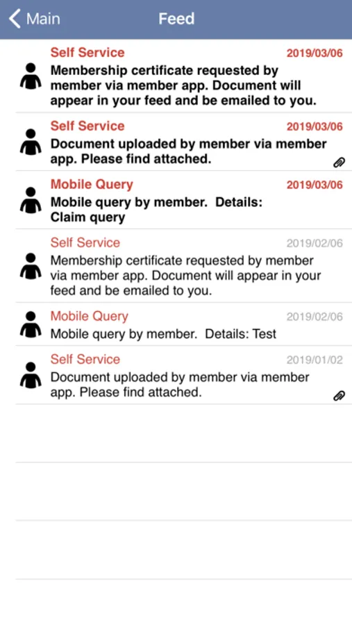 Information Feed: A list of all recent interactions between yourself or your membership and MASM. Including records of interactions with contact centre agents, recent statements.