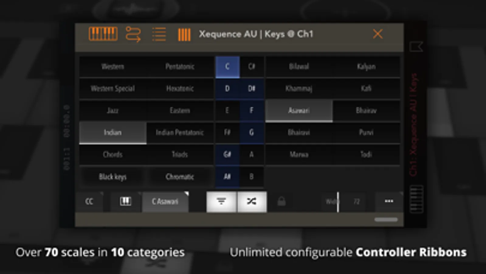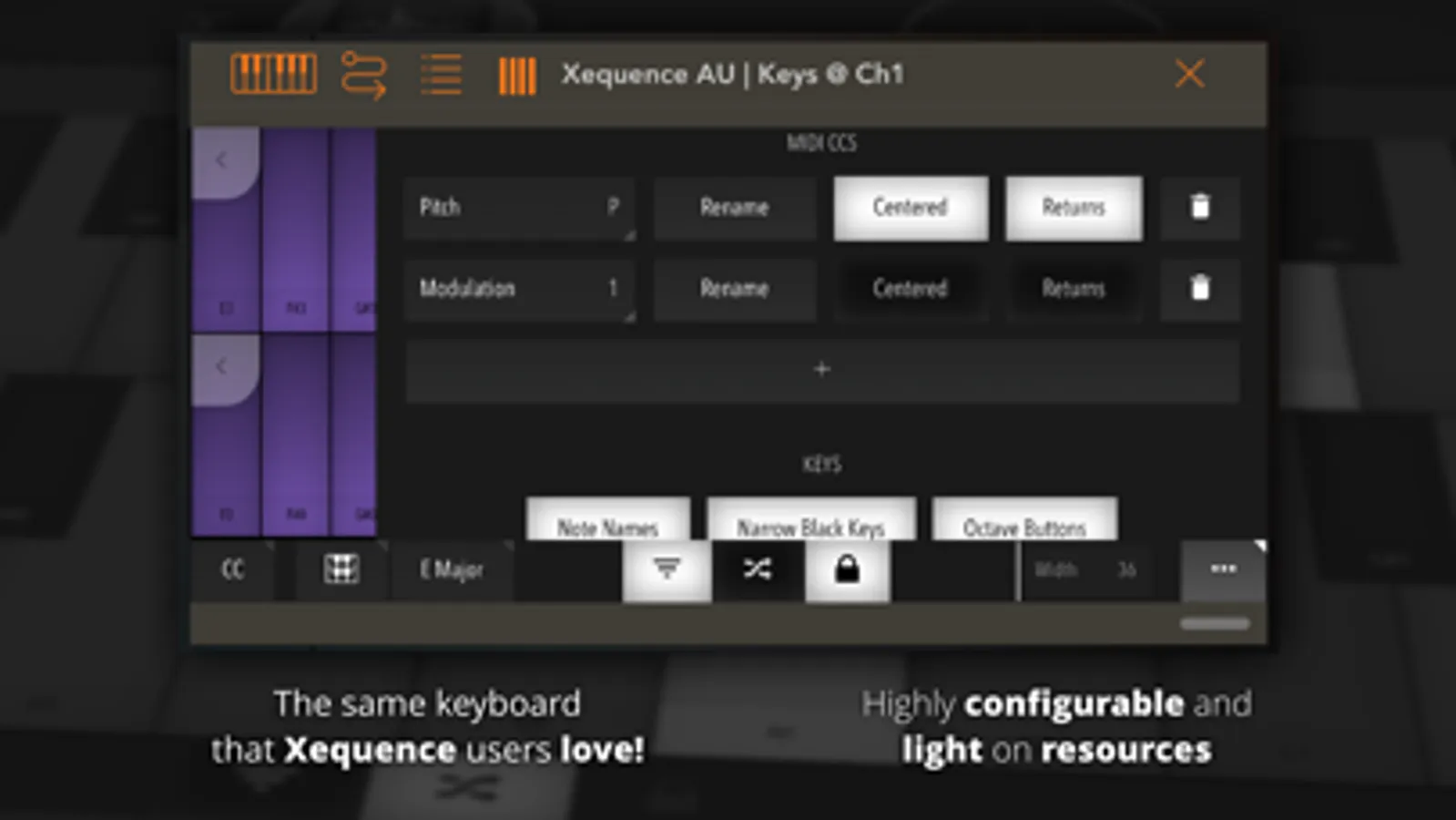 Xequence AU | Keys is a comprehensive and expressive keyboard controller for use inside AU (Audio Unit) hosts like AUM, Cubasis, apeMatrix, etc.