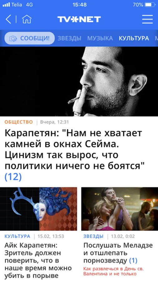 - с легкостью подключайся ко всем тематическим разделам TVNET.lv