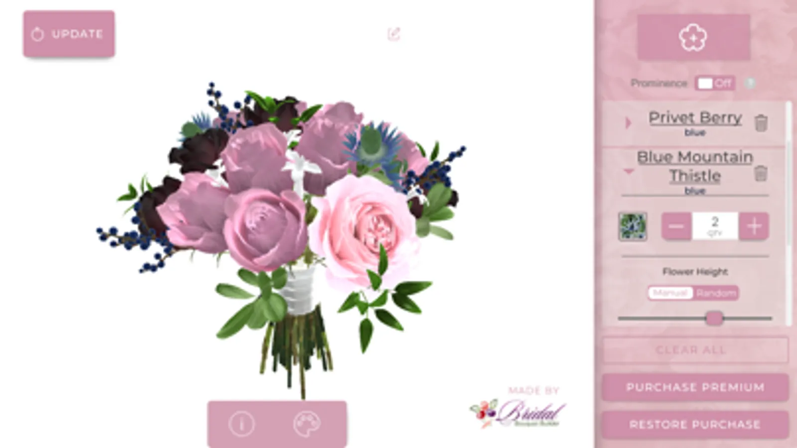 Whether you’re a bride-to-be, a florist, or anyone that is helping with wedding flowers, this app is for you. Bridal Bouquet Builder helps you design virtual 3D wedding bouquets, without any artistic skill or computer knowledge.