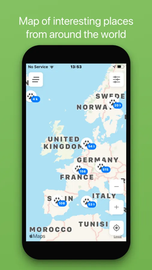 Explore the world with this unique Map´n paw game. When you check in, you get a point. You will get another point for the first photo of the place. You can see all your points and placements in the rankings.
