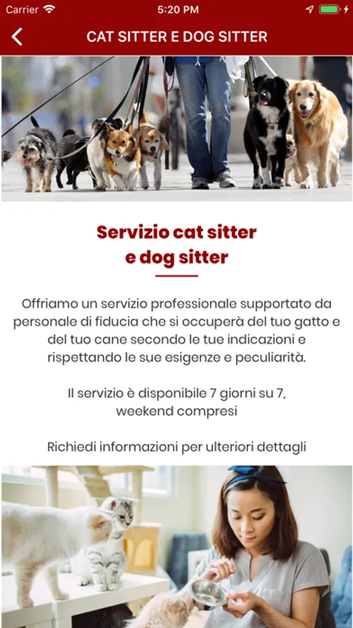 Supportata da persone di fiducia, pronte ad assisterti in tutto ciò di cui avrai bisogno, si occuperanno del tuo gatto e del tuo cane, e non solo, secondo le tue indicazioni e rispettando le esigenze e le peculiarità del tuo amico peloso.