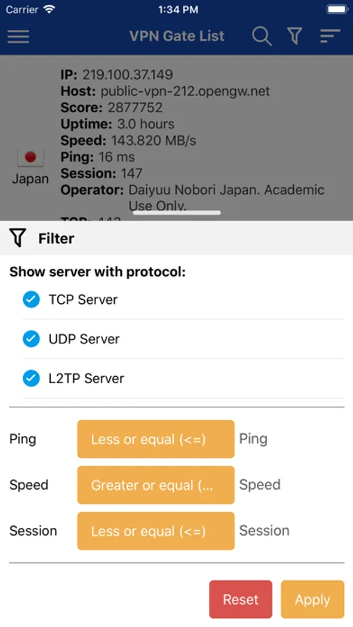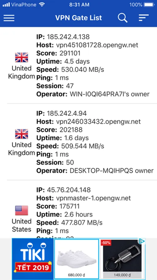 VPN Gate List provide list of VPN Server by volunteer from open source project vpngate. With VPN Gate List you can search VPN Server by country, change sort of server list by country, speed, uptime, etc.., you also change sort type ascending or descending.