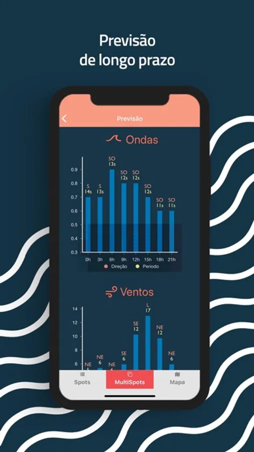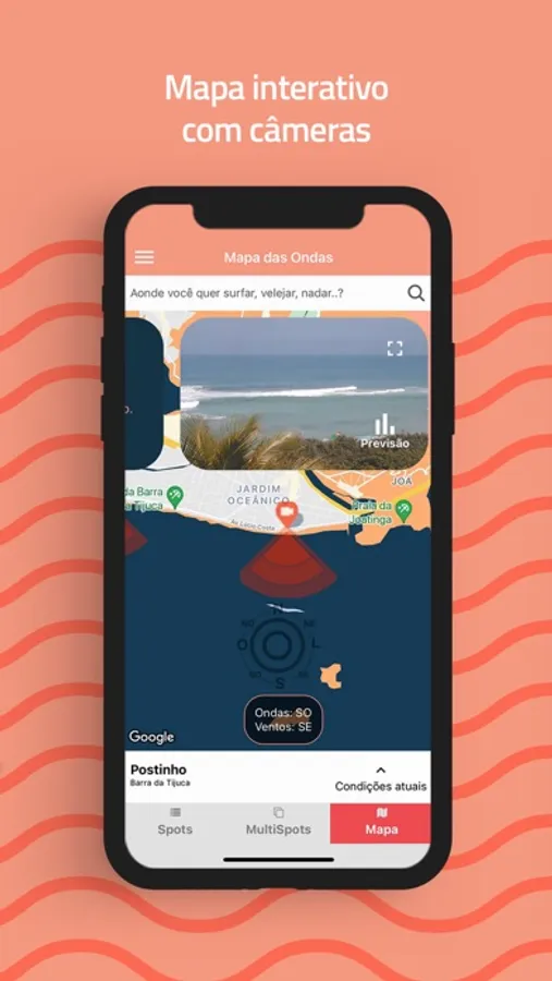 Presente e o futuro no mesmo lugar. Além de mostrarmos as condições em tempo real, também disponibilizamos a previsão das ondas e do vento.