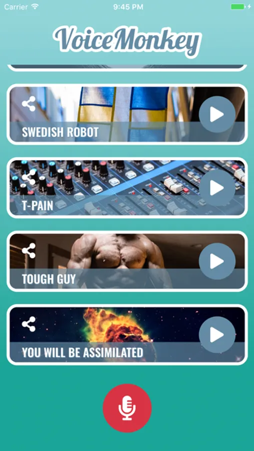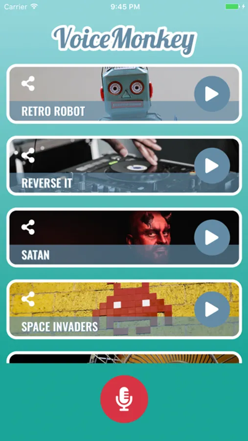 Record your voice and play it back with 27 different fun special effects. Then share them to your favorite app like WhatsApp, SMS or email.