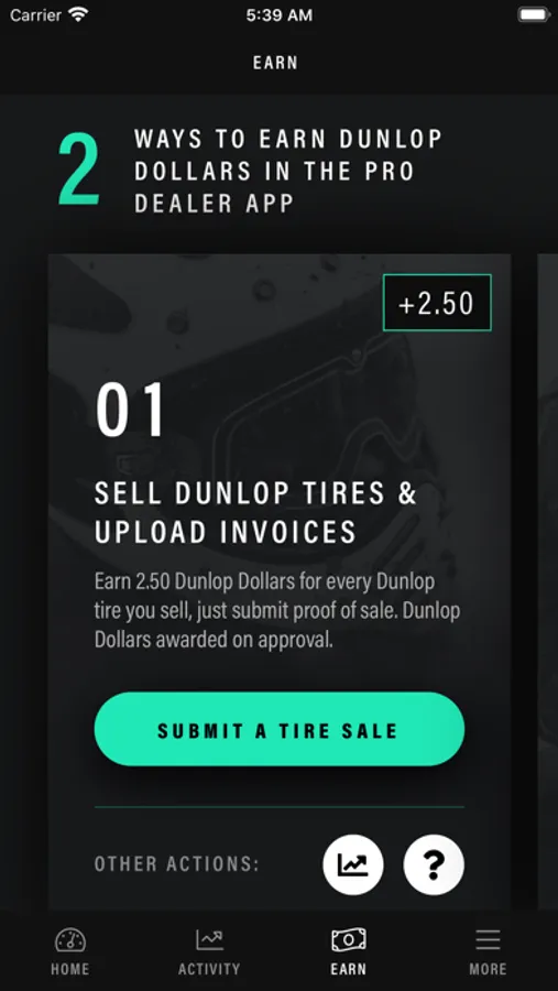 The Dunlop Pro Dealer app is the quickest way for our Dunlop Pro Dealers to submit customer tire invoices for approval to earn rewards points.