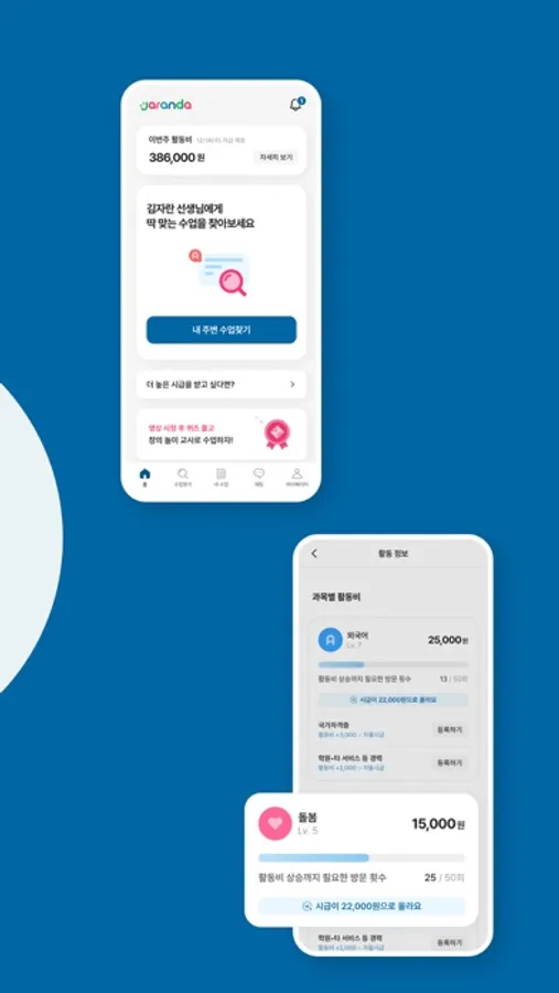 놀이돌봄 시작 시급 1만원부터, 배움 수업은 더 높은 수업료를 받으실 수 있습니다. 자란다에서 열심히 활동하면 아이와 선생님의 성장과 함께 선생님의 급여도 성장해요! 한 번만 만나는 수업과 정기적으로 만나는 수업이 있으며, 개인 사정으로 한동안 활동이 어려울 경우 잠시 쉬는중 상태로 변경하실 수 있습니다.