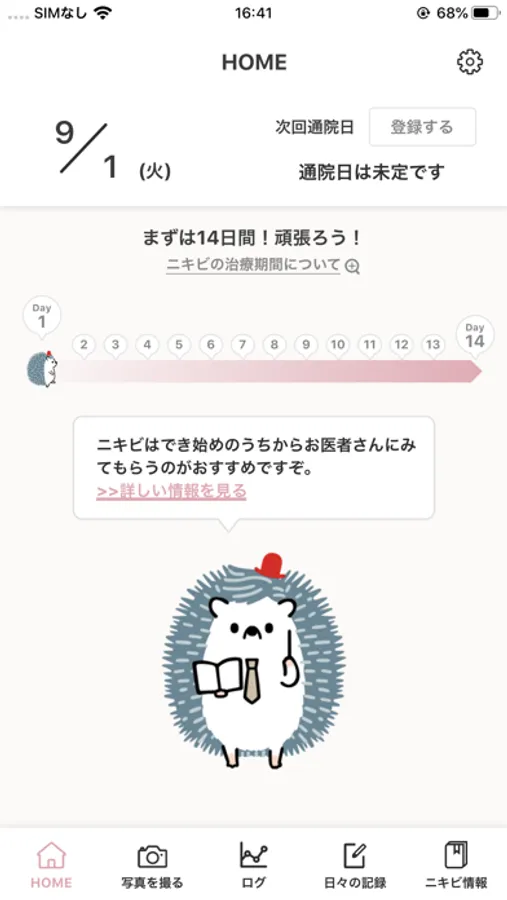 「ニキビログ」は、ニキビに悩む人の治療継続をサポートするスマートフォン用の無料アプリです。
