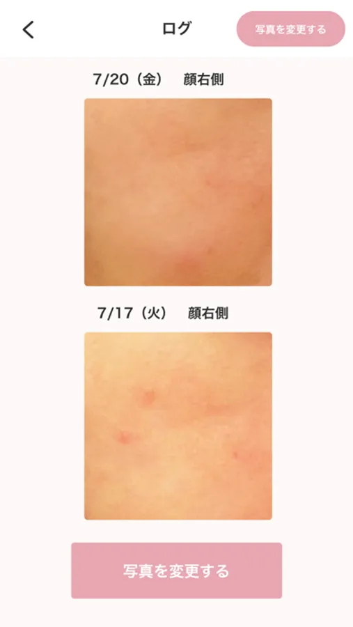 過去に撮ったお肌の写真や日々の記録を確認する際に、タグで絞り込み、部位ごとに振り返ることができます。