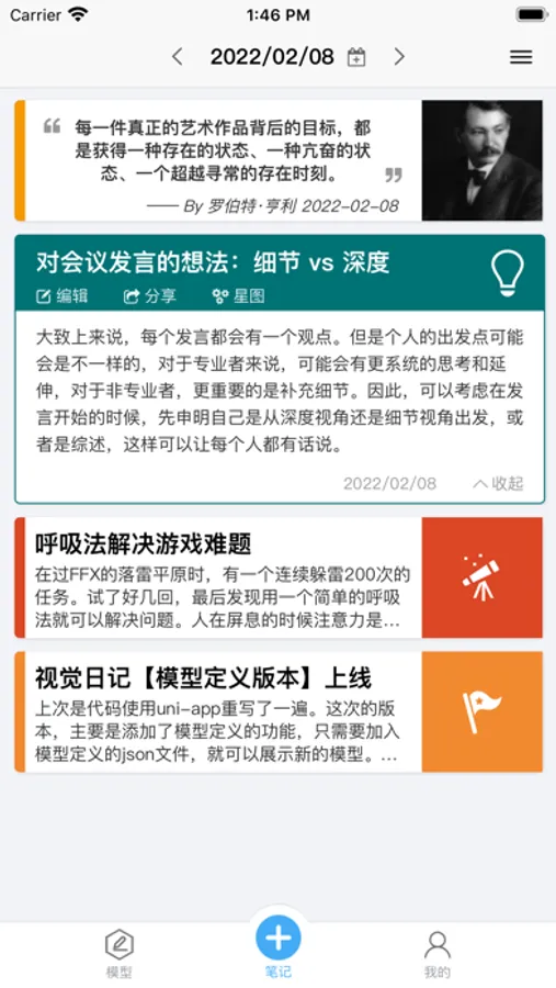 * 生活节点、总结复盘、成就,将努力后的心情沉淀为心境;