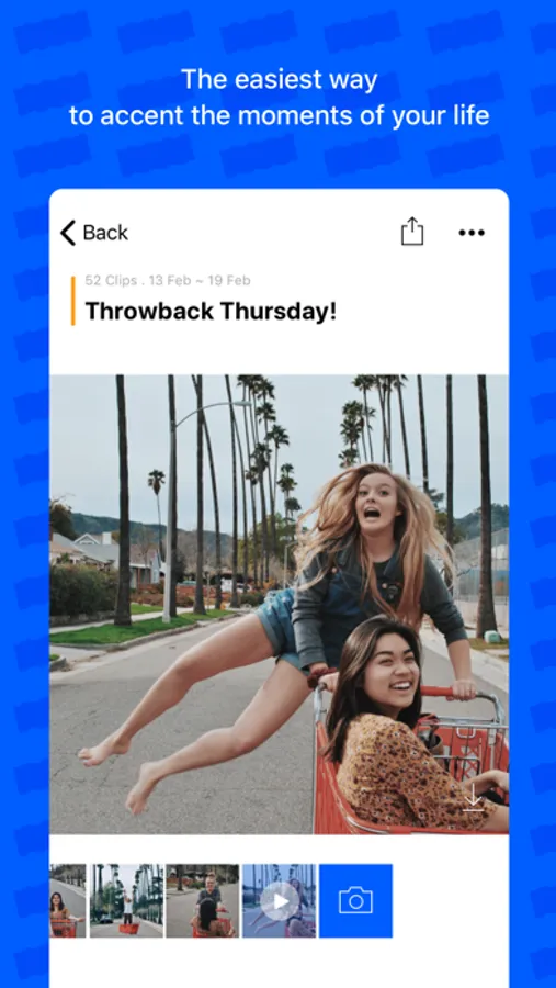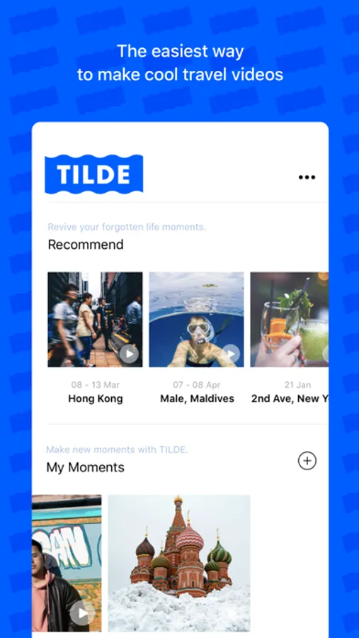 TILDE prolongs the accented life moments of yours. Live Photos of your trips and parties with your friends and family can turn into a single video collage.