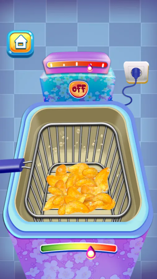 - Frying time , Put the potatoes slices into the hot oil! But pay attention! Fry the slices carefully! Do not burn them!