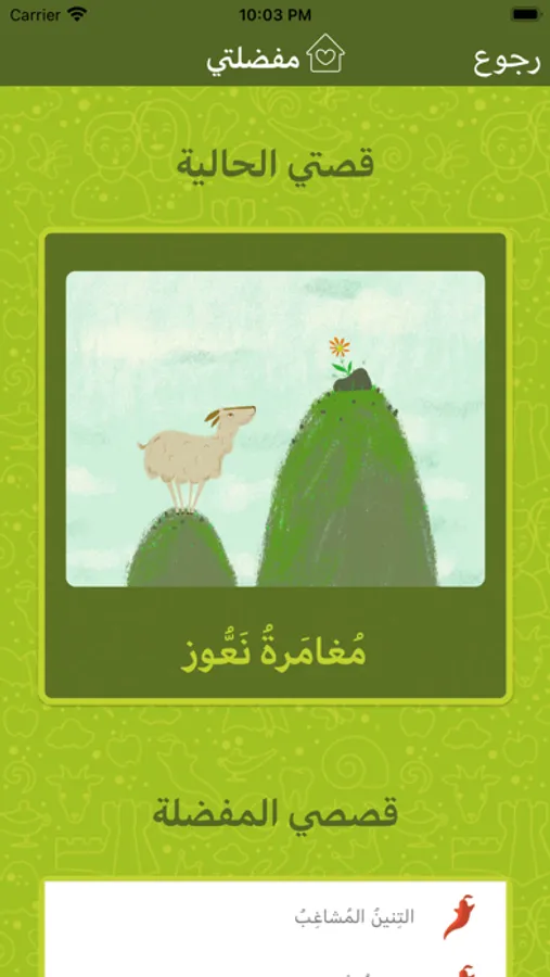 11. المفضلة: يوفر التطبيق ميزة إضافة القصص لقائمة المفضلة والتي تتيح وصول سهل و سريع للقصص