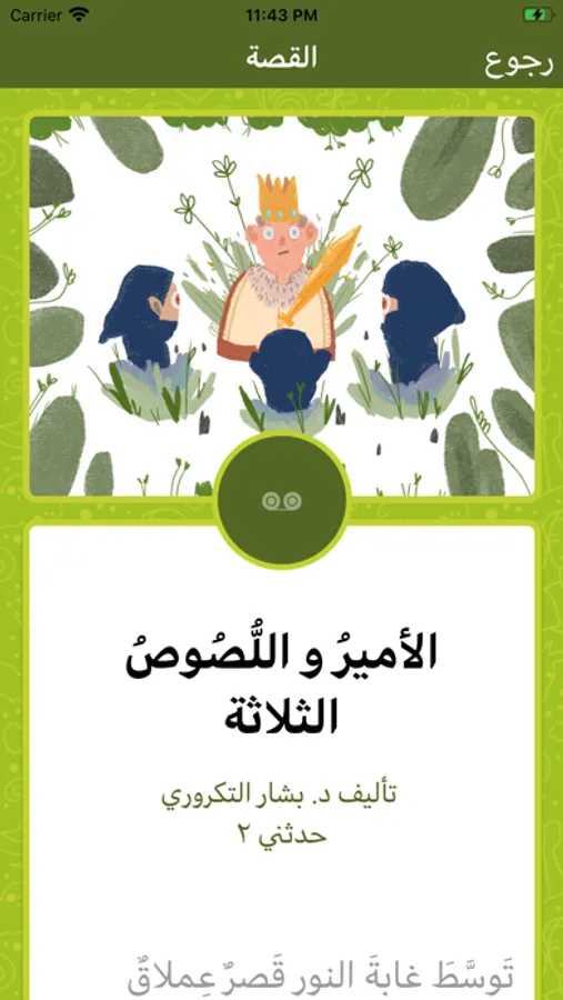 5. تسجيل صوتي واضح وممتع لكل قصة من خلال مييزة إقرأ لي. يقدم تطبيق حدِّثني ميزة قراءة القصص للطفل باللغة العربية الفصحى و بصوت واضح و ممتع في حال تعذر السرد من قبل ذوي الطفل