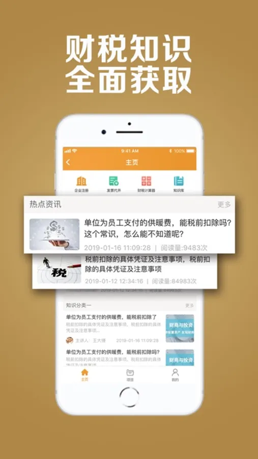 跟进项目之余,可在 APP 上查阅各种财税热点资讯,使用各种财税小工具丰富财税知识和经验。