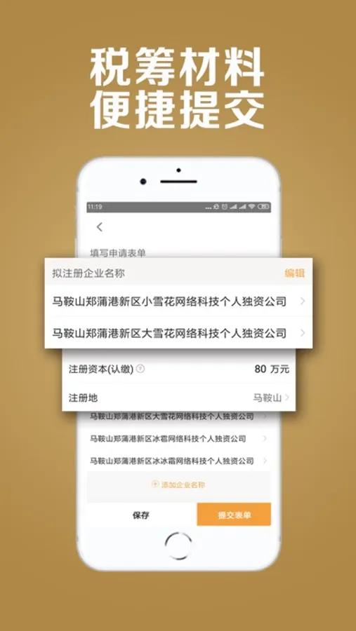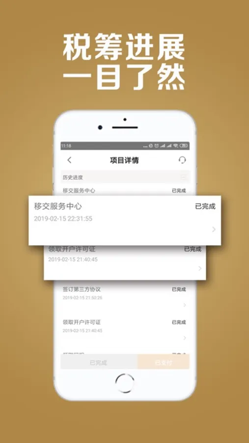 在税盾 APP,可随时查询税筹项目的进展情况,根据进展编辑提交各种材料。