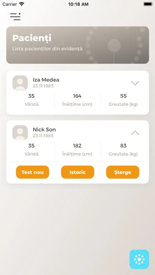 - Addition of patients, including anthropometric data (based on these, the application calculates the target values)